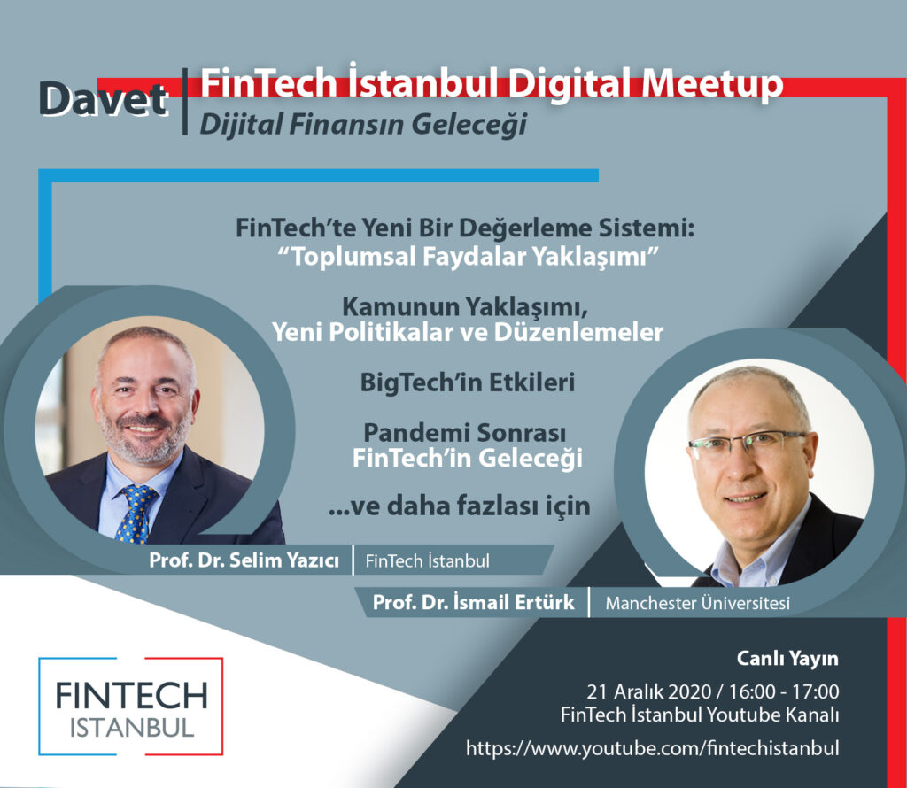 21 Aralık 2020 Pazartesi günü, saat 16:00’da gerçekleşecek bu online etkinliği FinTech İstanbul Youtube kanalı üzerinden izleyebilirsiniz.