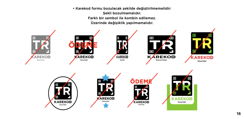 Satış noktası, e-ticaret siteleri, ATM’ler, el terminalleri, POS cihazları vb. her türlü karekod kullanım noktalarında, işyerleri ve ödeme hizmeti sağlayıcılarının yapacağı basılı, hareketli veya dijital her türlü pazarlama ve iletişim çalışmasında, kısacası, TR Karekod logosunun kullanıcıyla buluşacağı her bir noktada, TR Karekod geçerliliğini açık ve tutarlı bir şekilde anlaşılır kılmak ve kusursuz bir kullanıcı deneyimi elde etmek için bu yönergelere uyulması gerekiyor.